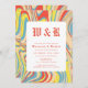 Fusion of retro and modern designs featuring swirl marble abstract pattern with old English font monogram personalized wedding invitation. Orange, yellow blue and pink colour palette wedding invite with swirl marble pattern background. This card is easily editable. If you need help with the customization of this product or you need more matching products for this collection kindly message me via Zazzle.