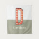 Modern design that's a little retro / vintage too, featuring large retro style theatre marquee bulb letter D, with customizable text below