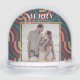 This retro, maximalist, kitsch, and modern "Merry Christmas" Christmas holiday snow globe features a navy blue background with geometric patterns. Personalize it for your needs. You can find matching products at my store.