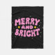 Retro Merry And Bright Holiday Design Fleece Blanket