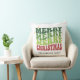 Spread holiday cheer with this colourful pillow that features festive, retro-style typography that proclaims, “Merry, Merry, Merry Christmas,” in vibrant shades of red, green, and yellow. Simple accent stars add a touch of magic to the design, and the best part is that you can customize the family name to make this holiday pillow uniquely your own. Decorate your home for the season with style, warmth, and a personalized touch.