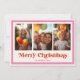Retro Merry Christmas Pink Rainbow Frame 3 Photo Holiday Card