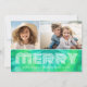 Retro MERRY - Tie-Dye Teal - 2 Photo - 70s Vibe Holiday Card