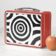 Whether you use it to bring your lunch or tote your lipstick , you'll love this retro style metal lunchbox with artwork by Buttercup's Clothing and Collectables! This super cute lunch box features an abstract pattern in shades of black and white . Various background colours available.