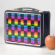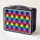 Whether you use it to bring your lunch or tote your lipstick , you'll love this retro style metal lunchbox with artwork by Buttercup's Clothing and Collectables! This super cute lunch box features an abstract plaid pattern in all the shades of the rainbow. Various background colours available.