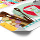 This poster has an illustration of kitchen shelves done in a retro mid century modern style. This design is inspired by all the things found in built in or hutch shelves. From jams and jellies to canned vegetables, spice tins, retro clock radio and cookbooks.