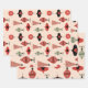 Retro Mid Century Modern Christmas Red Black Cream Wrapping Paper Sheet