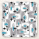 Retro Mid Century Modern Cosmic Abstract Pattern Black Grey White & Blue..