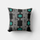 Retro Mid Mod Columns Boxes Teal Throw Pillow
