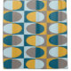 This atomic era-inspired abstract art pattern has ovals inside rectangles in various shades of blue and yellow-orange.