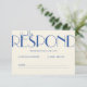 Make replying simple and stylish with this modern cream and navy RSVP card. Featuring a clean layout with the bold phrase "Kindly Respond" in a unique blend of elegant script and striking serif, this card offers guests an easy way to confirm their attendance.