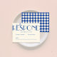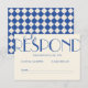 Retro Minimalistic Chequered Pattern Blue Wedding RSVP Card