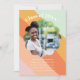 Retro Mint Orange Stripes Photo Graduation Party Invitation