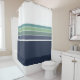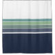 Fun retro/mod navy blue, teal, and green striped shower curtain gives that fun 70's/80's feel to your bathroom. Simple and minimalist, it's a bright yet soothing pop of colour that blends well with many design styles, from retro to transitional to nautical.