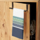 Fun retro/mod navy blue, teal, and green striped towel is a fun way to bring some of the 70s and 80s vibe to your kitchen. It's a bright yet soothing pop of colour that blends well with many design styles.
