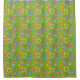 Bright and colourful throwback pattern features multi-ringed circles of a variety of sizes and colours on grass green background.