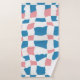 Retro Mod Pink Blue Chequerboard Abstract Bath Towel Set