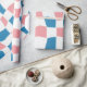 Retro Mod Pink Blue Chequerboard Abstract Wrapping Paper