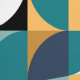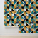 Retro Mod Squares Mustard Teal Aqua Blue Black Wallpaper