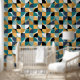 Bring a touch of retro flair to your interiors with this joyful wallpaper featuring a unique geometric design. The retro mood pattern combines bold moody colours that can transform any room into a stylish haven. Perfect for those looking to make a bold statement, this wallpaper is sure to impress your guests and enhance your decor. Explore the endless possibilities of revitalizing your environment and express your personality with this eye-catching design.