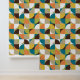 Retro Mod Squares Teal Orange Green Yellow Brown Wallpaper