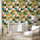 Bring a touch of retro flair to your interiors with this joyful wallpaper featuring a unique geometric design. The retro mood pattern combines bright colours that can transform any room into a stylish haven. Perfect for those looking to make a bold statement, this wallpaper is sure to impress your guests and enhance your decor. Explore the endless possibilities of revitalizing your environment and express your personality with this eye-catching design.