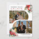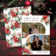 First Christmas as a married couple card with retro modern photo collage and festive sentiments. You can upload 2 photos - for example, a wedding photo and a christmas photo - which will be displayed in a unique curvy layout and framed with rustic red christmas flowers and winter greenery. The invitation is titled "warmest wishes from the new Mr & Mrs". In between the photos it reads "tied the knot, decked the halls" and then you can add your custom greeting such as "have a merry little christmas". Please browse my First Christmas Married Photo Cards collection for more designs.