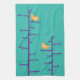 Retro Modern Birds on Tree Branches Kitchen Towel