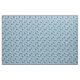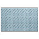 This fabric features an all over print of clean and modern geometric style illustrations of flowers with a retro feel. The flowers are in shades of blue and cream and set against a light blue background.