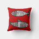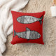 Retro Modern Fish, Deep Red and Grey / Grey Throw Pillow