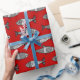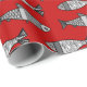 Retro Modern Fish, Deep Red and Grey / Grey Wrapping Paper