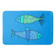 Retro Modern Fish, Turquoise and Cerulean Blue Bath Mat