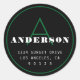Retro-Modern Monogram Address | Black Green White Classic Round Sticker
