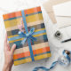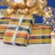 Retro Modern Plaid Pattern Mustard Blue Orange Wrapping Paper