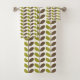 Rétro ensemble noir de serviette de motif de marguerite blanche, arrière - plan blanc avec le motif vert et brun de feuille. Un accent parfait pour votre bain ou spa.