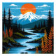 This stylish poster features a colourful and bold illustration of a retro mountain landscape in red, orange, and blue.
