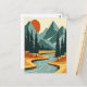 Retro Mountain Landscape Illustration Red Blue Postcard