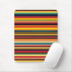The palette moves fluidly through mustard yellow, terracotta, deep red, teal blue, forest green, navy, charcoal, and soft cream. Each stripe varies subtly in width, giving the design a relaxed, hand-curated feel rather than a rigid graphic look. The result is a pattern that feels both nostalgic and contemporary — timeless without being dated.