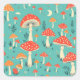 Blue and orange coasters with an illustration of retro mushrooms in vintage colours.