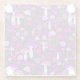 This glass coaster is decorated with trippy, psychedelic illustrated mushrooms and flowers in shades of hot pink and bold purple.