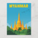 Retro Myanmar Travel Poster Postcard