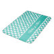 A retro name turquoise and white polka dot pattern bath mat makes a great bathroom accessory. Modify the fill colour and customize the name. It makes a great housewarming gift. Additionally, change the name into initials, change the font, font colour, or font size. Please remember to amend the shape coloration too. For custom design enquiries or customization assistance, reach out to us at info@KBMD3signs.com.