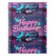 Retro neon Happy Birthday sign in pink and teal Notebook