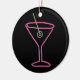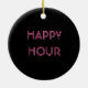 Made to look like a vintage bar sign, the retro design on this ornament features a neon pimento-stuffed olive on a toothpick floating in a pink neon martini glass. On the back of the ornament the phrase “HAPPY HOUR” is spelled out in open text in the same pink. The customizable text can easily be changed to say whatever you like or can be deleted altogether. From my original digitally created image.