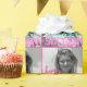 This custom gift wrapping paper features a retro 90s style Sweet 16 birthday theme. The background image is a sample black and white photo of a young girl, which you can replace with your own custom photo or image of your choice. The "Sweet Sixteen" title is printed at the bottom in teal and pink neon colours that resemble a vintage neon sign.