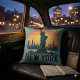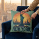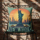 Retro New York City Skyline with Statue of Liberty Throw Pillow