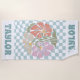 Multi Custom Color and Font Style - serviette de plage personnalisée avec nom, rétro à damiers arrière - plan et fleurs. Customisez toutes les couleurs comme vous le souhaitez ! Idée cool pour le cadeau Bridesmaid !