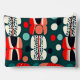 Featuring cream, red, and green abstract shapes, this bright Scandinavian retro pattern absolutely pops against its deep green background.
