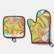 Retro Orange Abstract Artistic Custom Oven Mitt & Pot Holder Set