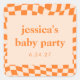 Retro Orange Abstract Chequerboard Baby Shower Square Sticker